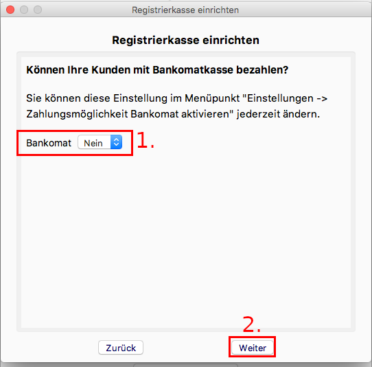 1. Falls Bankomatzahlungen möglich sind, dann wählen Sie "Ja" aus. Andernfalls wählen Sie "Nein" aus.