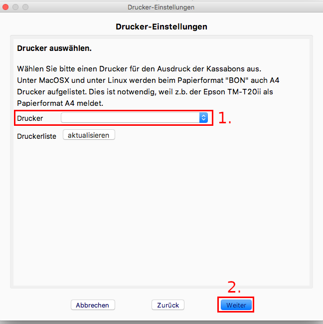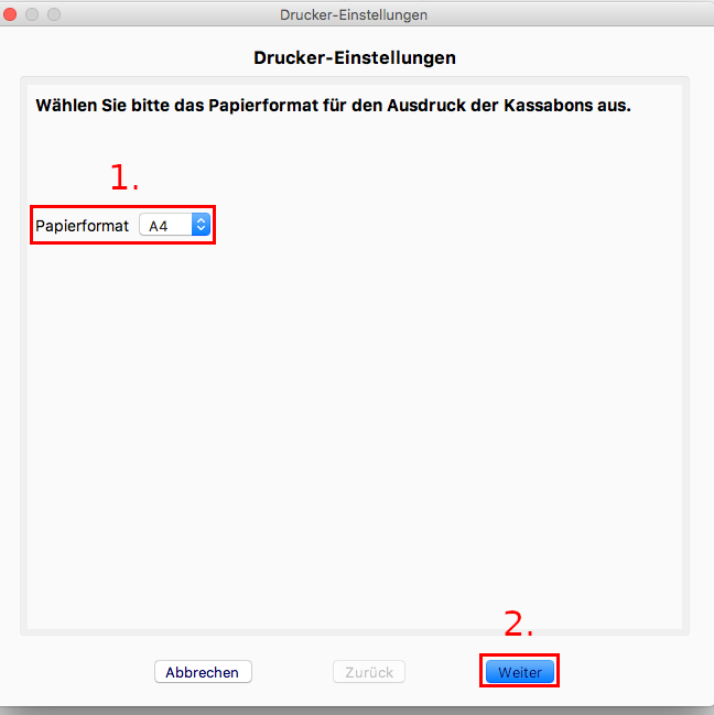 1. Wählen Sie das Papierformat des Druckers aus.