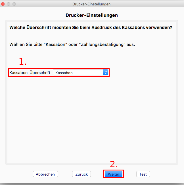 1. Wählen Sie die Überschrift des Kassabon aus.
