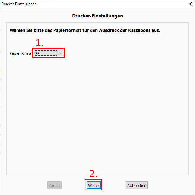 1. Wählen Sie das Papierformat des Druckers aus.