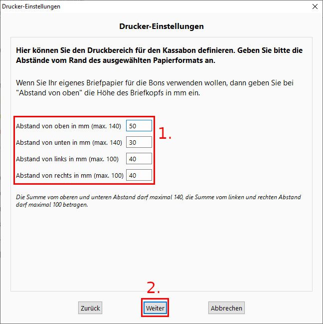 1. Optional können Sie die Seitenränder des Druckformats anpassen.
