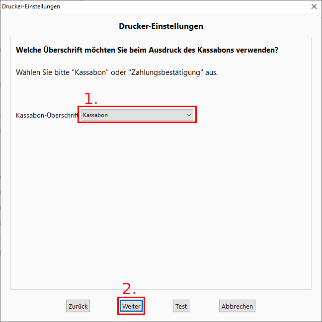1. Wählen Sie die Überschrift des Kassabon aus.