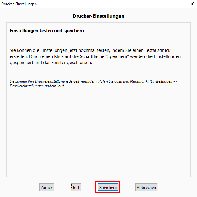 Im cbird Aufgabenbereich klicken Sie auf "Testaudruck", um zu überprüfen ob der Drucker und die Sicherheitseinrichtung funktionieren.